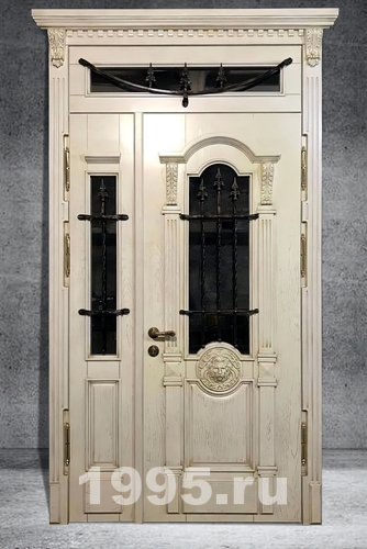 Дверь с массивом, ковкой и стеклом, резьбой, карнизом