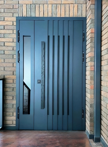 Остекленная парадная дверь с отделкой МДФ, цвет графит или любой по RAL