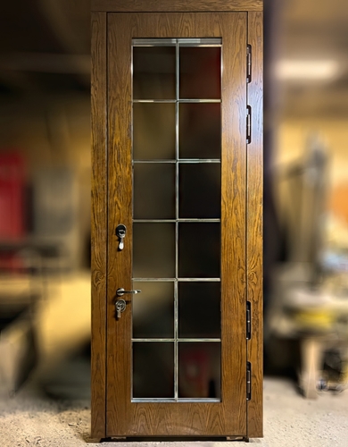 Однопольная дверь с отделкой МДФ шпон и тройным стеклопакетом